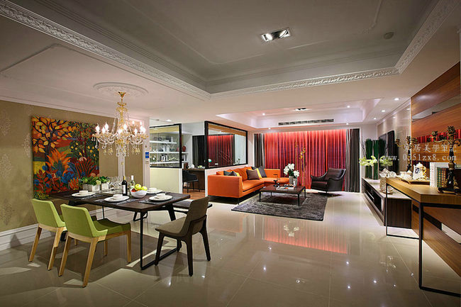 主要建材:拋光石英磚,大理石,水晶燈,木皮