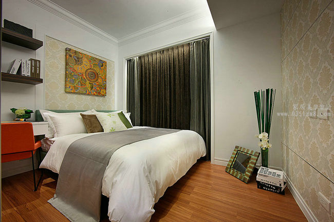 設計師採用花卉意象的壁紙與藝術掛畫裝飾床頭背牆,演繹尊貴不凡的居家表情。