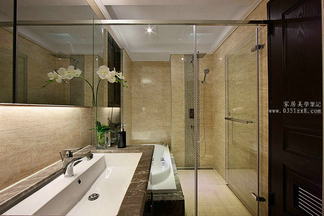 使用低調內斂的米色洞石為立面,並採乾濕分離的飯店式設計,機能與紓壓完美並存。