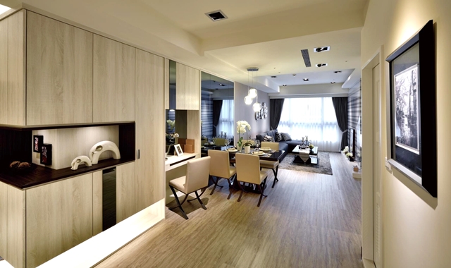 設計作品概念:黃維晢設計師以簡潔、俐落要領表現時尚現代感,以精確規劃充分發揮坪數效益,讓新婚小家庭也能享有住得豐盈、使用寬裕的居室空間。